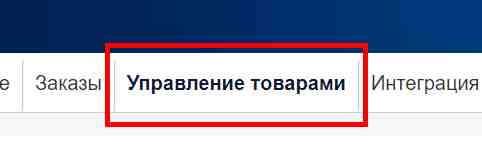 2. В верхнем меню перейти по ссылке "Управление товарами".